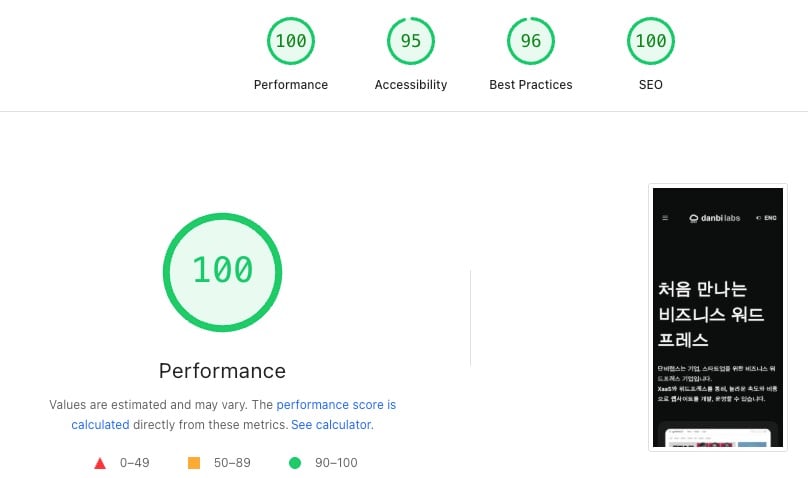기성 테마를 사용하면 다양한 설정, 불필요한 CSS와 JavaScript 등으로 인해 무겁다고 생가하는 분들이 있습니다. 이 또한 불필요한 리소스를 많이 가지고 있는 레디메이드 테마로 인해 발생한 오해입니다. 모던한 방식의 워드프레스 테마는 매우 빠르게 동작합니다.